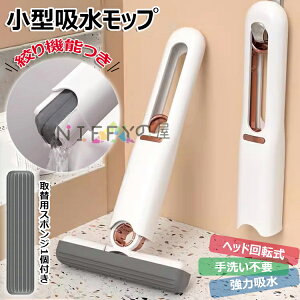 【ミニモップ】【スポンジ3個付き】【乾湿両用】スポンジモップは床掃除だけでなく、掃除ワイパーの役目も果たします。窓、壁、鏡、床、地面、天井の水気を掃除できます。モップには絞り器がついています。掃除と脱水が一体化し、細菌
