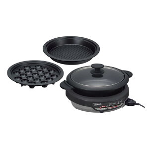 ズ●「鍋」、「内鍋」、「たこ焼きプレート」の3WAY最大1200Wの高火力!火力は無段階調整が可能●電源コード長さ:約1.8m●消費電力:1200W●付属品:鍋、内鍋、たこ焼きプレート、ガラス蓋、レシピブック...