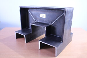 これは、がっちりとした、ゴツイ作業台。 もちろん特注品。 端材のH鋼 溝型鋼を組み合わせて、溶接したもの。 W=300mm H=200mm 足の幅 200mm 重量 約12キログラム 安定性・丈夫さ共 抜群です。 あなたのファクトリー...