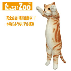 ●たっちいズー ニャンコ きじとら猫 は、立ち上がった愛らしい瞬間を再現した 胴がながーい猫のぬいぐるみ ネコのインテリアです。 猫コラ画像で人気になった胴がのびーる姿をイメージしたねこのヌイグルミは、ビッグサイズで存在感抜