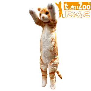 ●たっちいズー ニャンコ スコティッシュフォールドレッドタビー は、立ち上がった愛らしい瞬間を再現した 胴がながーい猫のぬいぐるみ ネコのインテリアです。 猫コラ画像で人気になった胴がのびーる姿をイメージしたねこのヌイグルミ
