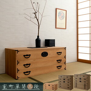 商品詳細 民芸箪笥といえば欅材をイメージしますが、『室町』は調質効果・防虫効果の高い桐材で仕上げ、風格は民芸箪笥を再現しました。単なる収納という目的だけでなく効果的に収納物を守るという機能的な一面も合わせ持った民芸調総