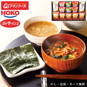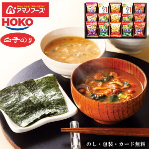 ※ 商品内容 アマノフーズ減塩いつものおみそ汁(なす・なめこ)、宝幸オニオンスープ×各3、アマノフーズ減塩いつものおみそ汁(ほうれん草)×4、白子のり味のり(8切5枚)×2 ※ 箱サイズ 244×419×45mm ※ アレルゲン 乳・...