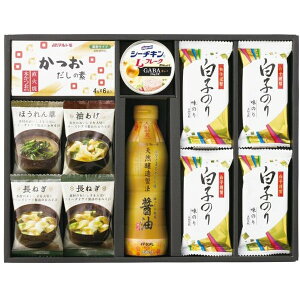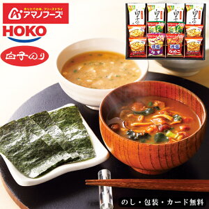 ※ 商品内容 アマノフーズ減塩いつものおみそ汁(なす・なめこ)×各1、アマノフーズ減塩いつものおみそ汁(ほうれん草)×2、宝幸オニオンスープ、白子のり味のり(8切5枚)×各4 ※ 箱サイズ 244×340×45mm ※ アレルゲン 乳...