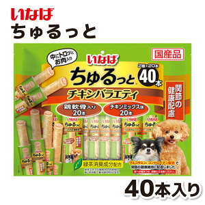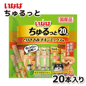 内容量 20本 商品説明(製品の特徴) ●ちゅ〜っと出して、食べられる、中にとろっとお肉が入ったスティック状のおやつです。 ●とりささみと愛犬の好きなチキンを加えて風味豊かに仕上げました。 ●関節の健康に配慮しグルコサミン・コ