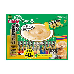●とろ〜り食べやすい液状ごはん!●・持ち運びにも便利な幅狭タイプのちゅ〜るが20本入ったバラエティパックです。・わんちゃんに必要な栄養をバランスよく配合した総合栄養食。・緑茶消臭成分配合で腸管内の内容物の臭いを吸着し、
