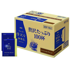 1箱の仕様 内容/AGF「ちょっと贅沢な珈琲店」ドリップパック スペシャルブレンド/7g×100 箱サイズ/208×317×215mm 化粧箱入 重量/1.3kg 加工地:日本 厳選したコーヒー豆を丁...