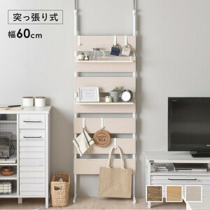 商品スペック一覧 商品サイズ W60cm×D24.5cm×H196〜254cm(パイプ中央取付D30cm) 素材 [背板・棚板]プリント紙繊維化粧板[脚部・フック]スチール(粉体塗装)[つっぱりパイプ]スチール(クロムメッキ) カラー...