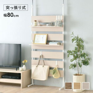 商品スペック一覧 商品サイズ W80cm×D24.5cm×H196〜254cm(パイプ中央取付D30cm) 素材 [背板・棚板]プリント紙繊維化粧板[脚部・フック]スチール(粉体塗装)[つっぱりパイプ]スチール(クロムメッキ) カラー...