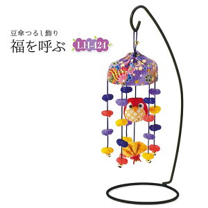 宝袋)」「長寿(鶴・亀)」「福を呼ぶ(ふくろう・扇)」モチーフをつるした可愛らしい豆傘つるし 5本を合わせて、豪華で賑やかなつるし飾りが作れます。