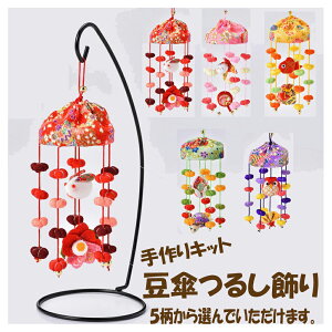 豆傘つるし飾りシリーズを全て飾れる五本飾りセット。真ん中にまりの下げ飾りが加わります。とても豪華で、満足度タップリの作りごたえです。●出来上がりサイズ:約 直径22cm×長さ38cm(つり台を除く)●...