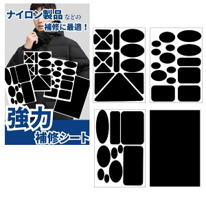 ?ナイロン製品の補修に最適!貼るだけ簡単!強力補修シート3枚セット?お気に入りのダウンジャケットに穴が開いても大丈夫!この強力補修テープがあれば、簡単・スピーディに修復可能です!?強力な粘着&耐久性? はがれにくく、洗濯や摩