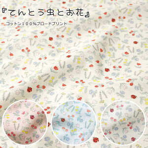 ●素材:表地 綿85% 麻15%・中綿 ポリエステル100%●生地幅:約108cm【生地の特徴】表布に綿麻の生成生地を使用し、人気の柄のてんとう虫とクロバーがプリントされた可愛らしいキルト生地です。表地の布もしっかりしていているので、レ
