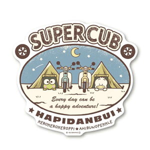 【商品解説】異色のコラボ実現。度々話題になるサンリオコラボステッカーにまた新たなシリーズが登場です。今回はホンダの名機と名高い『SuperCub』と『はぴだんぶい』のコラボステッカー。こちらの商品はクーラーボックスやアウトドア