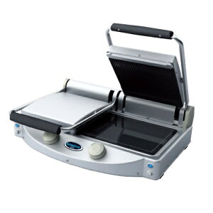 商品名:UNOX パニーニグリラー 1連式 シングルプレート 型番:PGS-1 メーカー:FMI (エフエムアイ) 外形寸法:幅330×奥行445×高さ180(mm) 上部焼成プレート開時高さ555mm 焼成プレート寸法:上部 幅25...