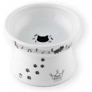 ハッピーディニング シリコンエッジ付きフットキャットボウル 音符&猫シルエットデザイン - 電子レンジ・食洗機対応、滑り止めベース、耐久性プラスチック/ガラス製スタイリッシュペットダイニング用、猫用ディッシュ、ペット給餌ステ