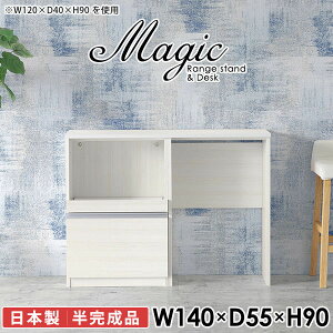 キッチンをスマートに。ゴミ箱収納スペース付きレンジボードmagic レンジ台×作業台 W140×D55×H90 木目サイズサイズ:約幅1400 奥行き550 高さ900 mm材質[天板・スライド棚]メラミン樹脂化粧合板[前板]ブラウン...