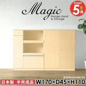 大型電子レンジも対応!食器棚も兼ねたレンジボードmagic レンジ台×収納庫 W170×D45×H110 木目サイズサイズ:約幅1700 奥行き450 高さ1100 mm材質[天板・スライド棚]メラミン樹脂化粧合板[前板]ブラウン・ダ...