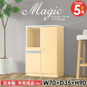 本棚 リビングボード スライドレール付き引き出しmagic レンジ台×収納庫 W70×D35×H90 木目サイズサイズ:約幅700 奥行き350 高さ900 mm材質[天板・スライド棚]メラミン樹脂化粧合板[前板]ブラウン・ダークブラ...