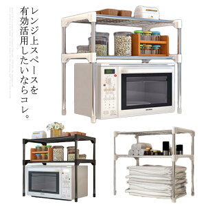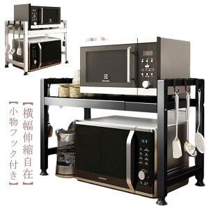 【レンジラック】電子レンジの上を便利な収納空間に変えるレンジラック。調味料?調理器具などをまとめて置けば、調理スペースも広がり効率アップ。【横幅伸縮自在】幅は40-64cmの間で伸縮することができ、置きたい場所や電子レンジに合