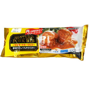 商品名米久 マスタードポークリブ原材料名豚ばら肉(輸入)、からし、粒入マスタード、トマトケチャップ、デミグラスソース、ウスターソース、しょう油、ぶどう糖果糖液糖、砂糖、ワイン、精製はちみつ、食塩、発酵調味料、おろしにん