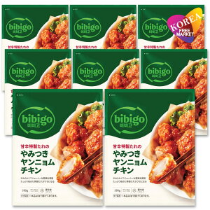 超簡単!電子レンジでチンするだけ!韓国本場の味をそのまま! bibigo ビビゴ ヤンニョムチキン やわらかくてジューシーな若鶏を使用した、たっぷり絡めた特製たれがクセになる韓国式チキン 甘味・辛味・酸味のバランスが抜群の、特製ヤ