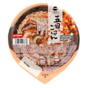 ■商品名:一膳炊き 五目ごはん■内容量:180g■賞味期限:製造日より1年■原材料:精米(日本産)、合わせ出汁(鰹節、干椎茸、昆布)、人参、筍、牛蒡、油揚げ、醤油、戻し椎茸、砂糖、食塩、生姜汁、香味調味料、米酢/豆腐用凝固剤