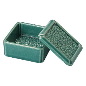 陶器・花紋小箱 トルコブルー角型の蓋付の陶器珍味入れになります。蓋付の角型陶器の仕様はゆがみなどが無いように仕上げるので精度が必要になります。サイズ : 約7.2×7.2×H4cm重量 : 195g生産国 : 日本保証期間 : 初期不...