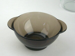 熱湯・レンジ・食洗器OKのデュラレックス(DURALEX)社のガラスです。おしゃれなスモークカラーの両手つきボウルです。スープやサラダに、おかず用にと扱いやすい大きさです。両手つきなので、熱いものを入れても、レンジで加熱しても持ち