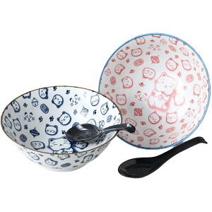 <商品内容>6.3ラーメン丼×2/φ19.8×7.6cm、ABSレンゲ×2/φ16×4.5cm<材質>丼:磁器、レンゲ:ABS<産地名>美濃焼<箱サイズ>21×21×10.8cm<箱種>化粧箱<重量>1200g<付属品>ABSレンゲ×...