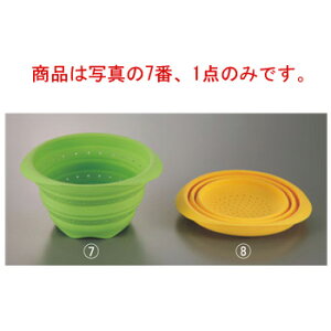 商品は写真の7番、1点のみです。 【色】グリーン 【外寸】220×185mm 【深さ】62mm 【高さ】115mm 耐熱温度:-40〜250℃ ●水を切って、そのままレンジにも入れられる便利な水切りボール ●折りたためるので収納にも大変便利
