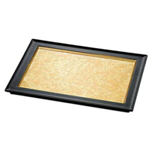 金色長角敷膳(中)金色の、華やかな敷膳です。金色の印刷紙を張り付け、ウレタン塗装しています。お祝いの席やお正月、パーティーなどでの演出に。☆和風の美しい輝き方をします。☆直接料理を盛ることができます。☆テーブルウエア以