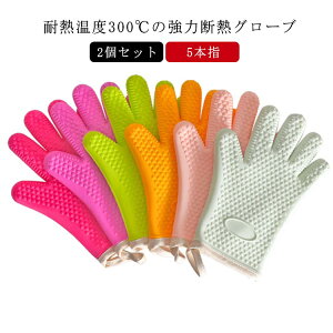 耐熱温度300℃の強力断熱グローブ高い耐熱性を持つシリコーンとコットンの二層構造フックに引っ掛けられるストラップ付き大きなお鍋もしっかりつかめる五本指タイプ気分が上がるキュートなハート型の滑り止め付き サイズ2個セットサイ