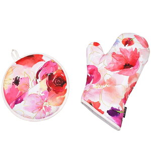 商品名ミトンセット ブロッサム商品の特徴おしゃれなのに機能的、防炎の性能に優れたキッチンミトンと鍋敷きのセットですしっかりとした厚みがある、ふっくらしたキルト加工のミトンと鍋敷きのセットです。ミトンと鍋敷きとも、片側の