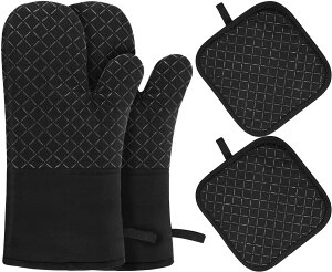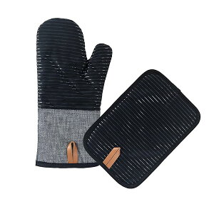 ?【商品仕様】ミトン:材質:シリコン+綿 サイズ:約30×18cm 耐熱温度:300℃ 重量:約260g (2枚セット) 鍋敷き:主な素材:綿 サイズ:17.5*17.5cm 重量:約60g (2枚セット)。●個人の体格により感覚は異...