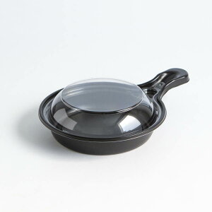 ・配送時間をご指定いただけない商品です。 ・沖縄・離島への配送は追加配送料金が別途必要となります。 スキレット風のプラスチック容器です。 本体は黒のPPFを使用することで耐熱力にも優れ、電子レンジの使用が可能です。 フタはOPSを