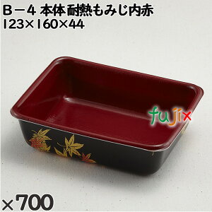 B−4(本体)耐熱もみじ内赤 201508 入数:700個(50×14)/ケース サイズ:123×160×44mm 容量:620cc 材質:耐熱PSP+PS両面ラミ オーブン:不可 電子レンジ:OK 備考:耐熱 1ケースで送料無料 ※...