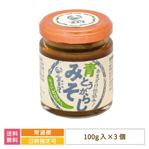 ※当商品は紅麹は一切使用しておりません。 商品詳細 名称 青とうがらしみそ 原材料名 米糀(米(国産)、こうじ菌)、水飴、大豆(国産)、酒、青唐辛子、塩/香辛料抽出物 内容量 100g 保存方法 直射日光...