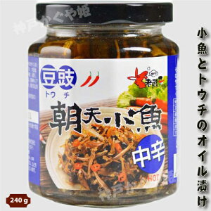 商 品 説 明品 名小魚とトウチのオイル漬け 内 容 量240g 原 材 料 干し魚(カタクチイワシ)、大豆油、発酵黒豆、糖類(砂糖、乳糖)、醤油、唐辛子、食塩、調味料(アミノ酸等)、酸味料、酸化防止剤(ビタミンE)(原材料
