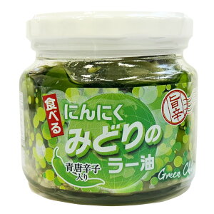 スライスニンニクがたくさん入った、青とうがらし使用の緑色の食べるラー油です。 にんにくの風味がしっかりと感じられ、その後に青とうがらしの辛みがきます。 チャーハンやパスタ、揚げ物、サラダ、豆腐など使い方は無限大です...