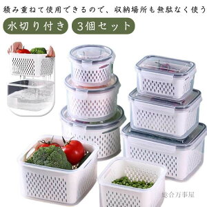 【蓋付き 水切り付き 密閉ボックス 3個セット】【積み重ねて使用できるので、収納場所も無駄なく使う】大蒜、たまねぎ、生姜や玉米の粒・果物・キャベツなどを、洗って水切りしそのまま保存できる、便利な保存容器です。水切り付きで水
