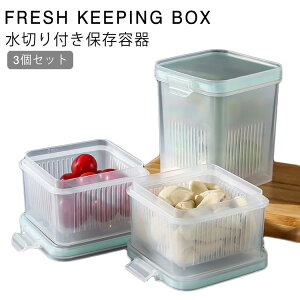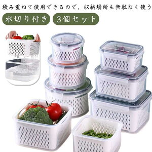 【蓋付き 水切り付き 密閉ボックス 3個セット】【積み重ねて使用できるので、収納場所も無駄なく使う】大蒜、たまねぎ、生姜や玉米の粒・果物・キャベツなどを、洗って水切りしそのまま保存できる、便利な保存容器です。水切り付きで水