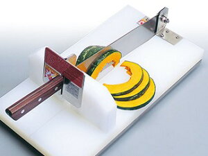 固いかぼちゃもテコ式でスムーズにカット!『テコの応用』テコの応用だから、にぎり部分を下ろすだけでパートの方にも簡単にカットできます。 『刃の長持ち設計』カット用溝がある為包丁が作業台には触れませんので長持ちします。 『