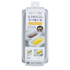 ●とうもろこしが丸ごと入るドームブタで、電子レンジでとうもろこしを丸ごとゆでられます。 ●圧力効果でおいしくできる、ザル付き2重構造です。 ●ザルは、水さらしや色止めにも便利です。●とうもろこしの他、さつまいもやアスパラ