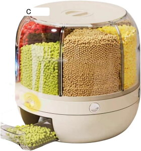この商品について 便利で安全:米びつ360°回転、トップカバーの取り外しが可能で、穀物の追加に便利です。 新鮮に保つ:密閉された保管室は、砂糖、米、ナッツ、豆、穀物、スナック、ペットフードを保管するのに適しており、多くのスペ