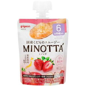 内容等予告なく変更する場合がございます。予めご了承ください。 商品名称 ピジョン くだものスムージー MINOTTA とちおとめ 内容量 70g1 特徴 ◆厳選した国産くだものでつくった赤ちゃんのためのスムージー