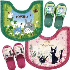 となりのトトロと魔女の宅急便のトイレマットとスリッパのセットです!トイレマットはふわふわな気持ちのよい肌触りで裏面には滑り止め付き!スリッパも滑りにくい加工が施されています! お手洗いが楽しい空間に!プレゼントにもおす