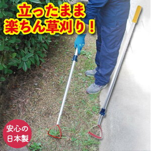サイズ 約 全長:1,010〜1,440mm(無段階伸縮) 約 刃幅:110mm 材質 刃:特殊鋼SKS-5(メラミン焼付塗装) 柄:アルミパイプ(アルマイト加工)、ポリカーボネイト、塩化ビニール 商品説明 ●大変な除草作業を、立った...