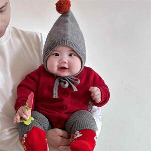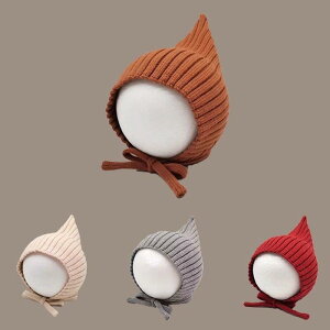 ・カテゴリ: ニット帽・カラー展開: グレー、ベージュ、キャラメル、レッド、グレーブラック、カーキ・つばのスタイル: つばなし・トップ形状: とんがり形・機能: 首元保護、保温、防風・スタイル: 可愛らしい、ベビー向け、スウィート・