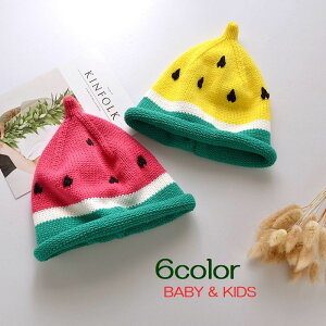 可愛いスイカデザインがポイントの、キッズ用ニット帽子です。 【サイズについて】 帽子周り:48?54cm